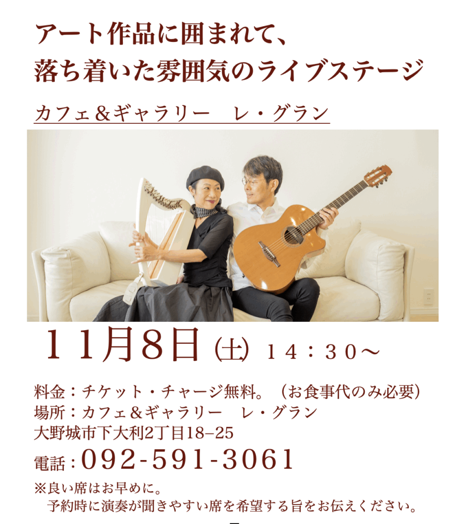 11月8日(土)カフェ&ギャラリー レ グラン(大野城市)14:30
