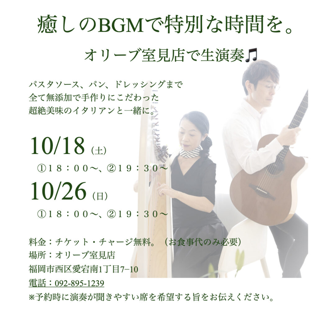 10月26日(日)オリーブ室見店(福岡市西区)①18:00、②19:30